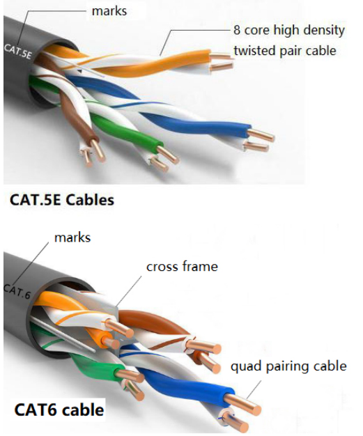 There is also a difference in thickness between Category 5E and Category 6 cables. The core of Category 5E cables generally ranges from 0.4 to 0.51mm, while Category 6 cables range from 0.52 to 0.6mm. The crystal heads also different among the two categories.